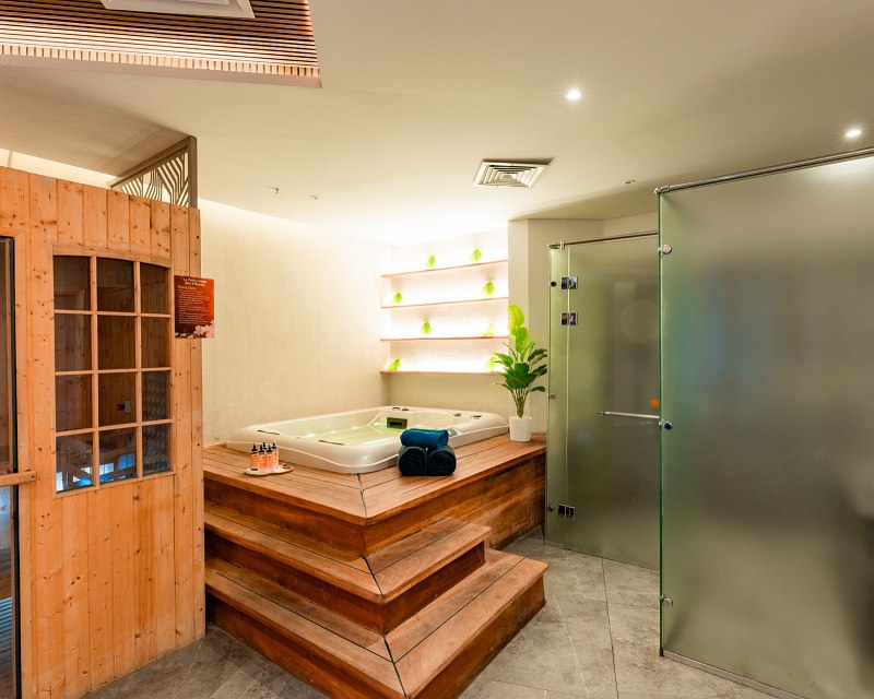 - Saunabereich: Infrarotsauna, Dampfbad, Hamam