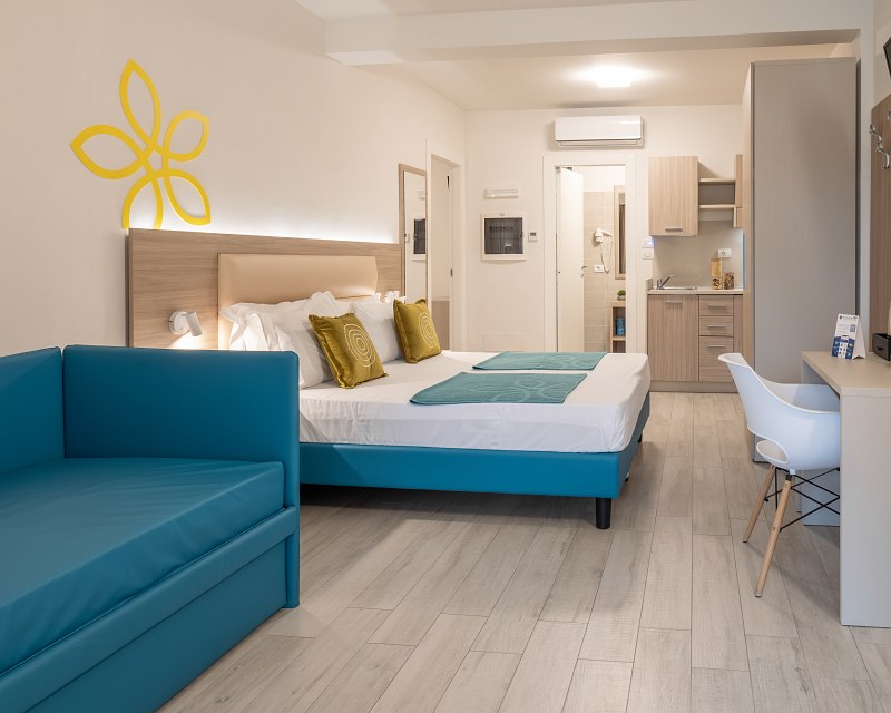 Studio, 25 qm, Superior, 1. Etage, Seeblick, kombinierter Wohn-/Schlafraum, Dusche, WC, Klimaanlage, TV (Sat-TV), Kochnische, Gas-/E-Herd, Wasserkocher, Mikrowelle, Espressomaschine, Kühlschrank, Balkon, Bettwäsche kostenfrei, Bettwäschewechsel kostenpflichtig, Handtücher kostenfrei, Handtuchwechsel kostenpflichtig, Küchenwäsche muss mitgebracht werden, Energiekosten (kostenfrei), Endreinigung (kostenfrei)
