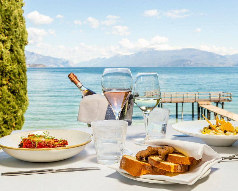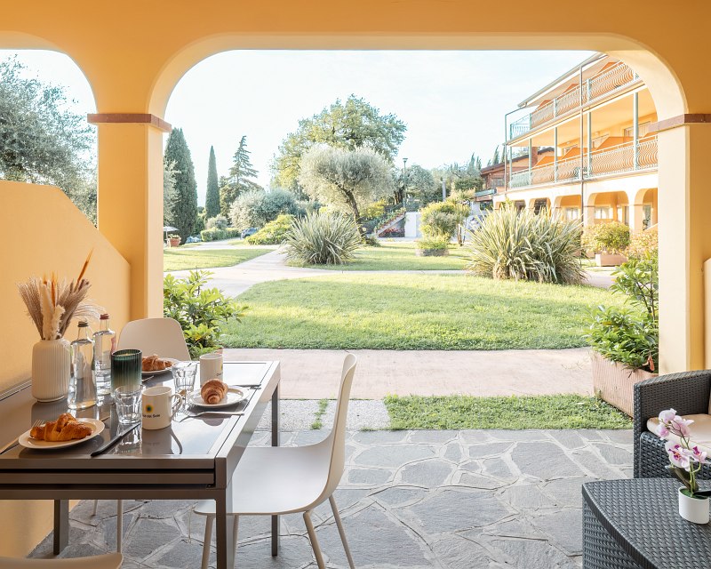 Genießen Sie das italienische, mediterrane Ambiente und die Abende auf der Panoramaterrasse mit Blick auf den Gardasee.