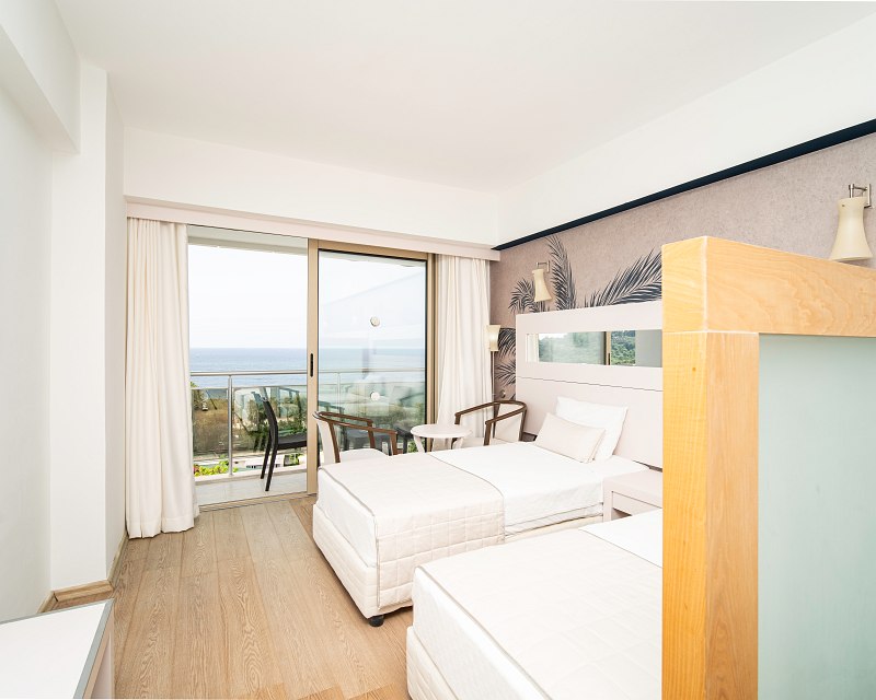 21-25 qm, Hauptgebäude, Meerblick, 1 Badezimmer, Badewanne, Haartrockner, Laminatboden, Klimaanlage, Minibar, Auffüllung bei Ankunft, Wasser, Safe (gegen Gebühr), 1 TV (Satellit), Telefon, Wasserkocher, Balkon