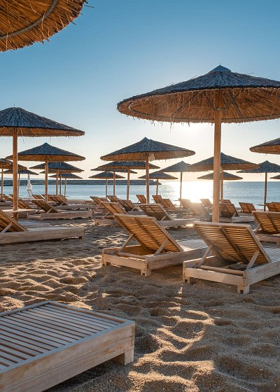 - Hotel mit eigenem Sandstrand, Sonnenschirm und Liegestühlen pro Zimmer (nach Verfügbarkeit)