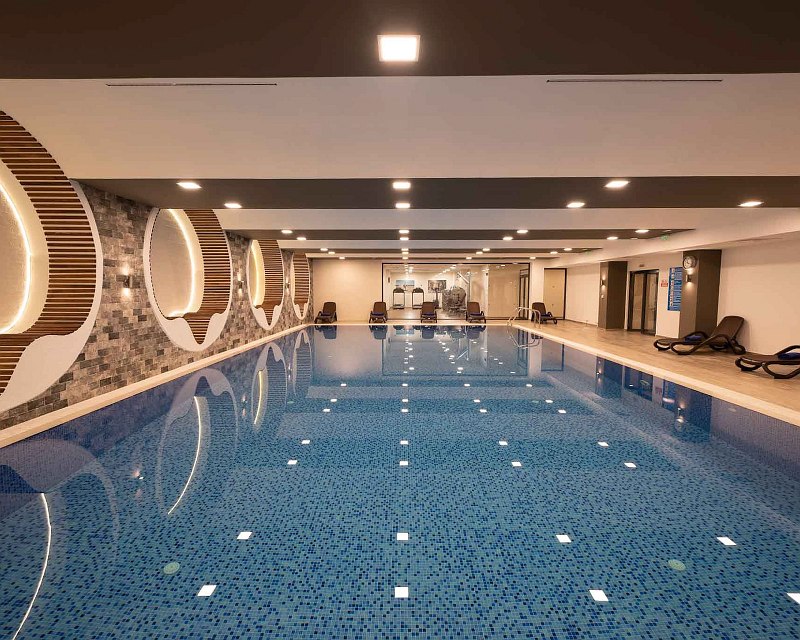 - Wohlfühlbereich auf Dachterrasse und Hallenbad