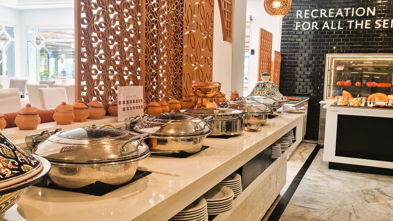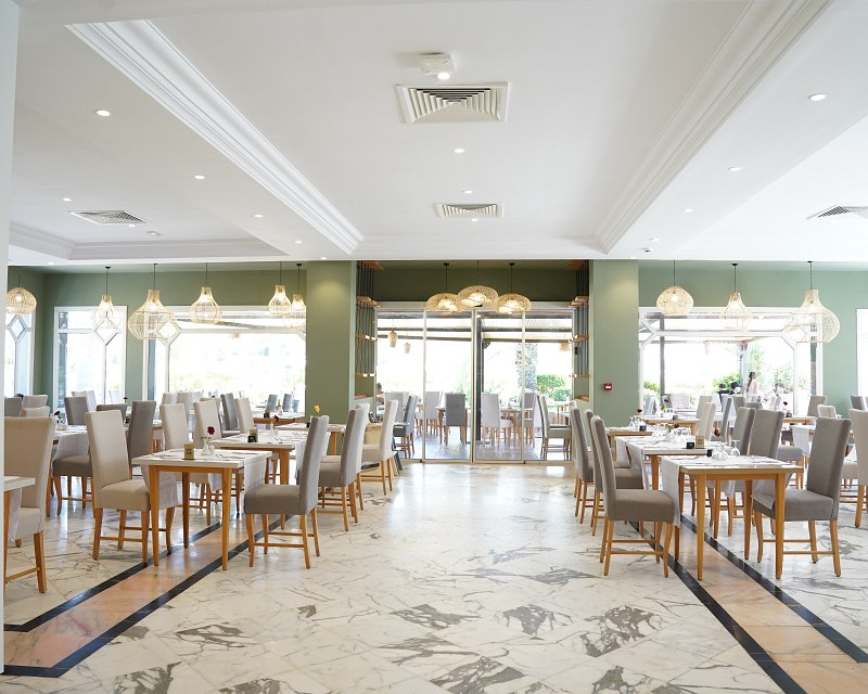 - Buffetrestaurant "ALYSSA": internationale Küche mit Selbstbedienugsbuffet, und Live-Cooking-Stations, spezielle Kost (vegan, vegetarisch, Allergie-Kennzeichnung), Nichtraucherzone, mit Terrasse, klimatisiert (Öffnungszeiten: Early breakfast: 4-7 Uhr, Frühstück: 7-11 Uhr,Mittagessen: 12.30-15 Uhr, Abendessen 18.30-21.30 Uhr)