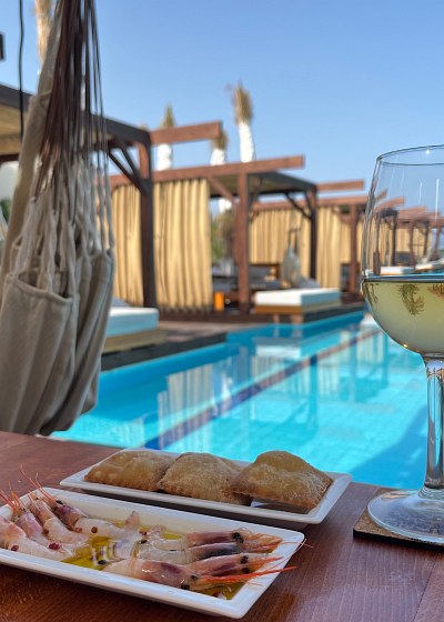 - PALMARILLIA Beach Lounge, Getränke von 12:30 Uhr bis Mitternacht und Mahlzeiten von 13-22 Uhr