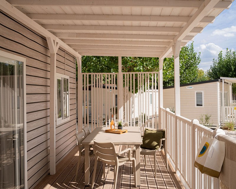 ca. 33 qm, Bungalow, 2 separate Schlafzimmer, kombinierter Wohn-/Essraum, 2 Bäder, Klimaanlage, TV, Kochnische, Veranda (möbliert), Hinweis: Es handelt sich um eine "Glücksunterkunft": Vor Ort erfahren Sie in welcher Kategorie die Unterbringung erfolgt. Zimmerausstattung und Zimmergrüße kann je nach verfügbarer Kategorie variieren