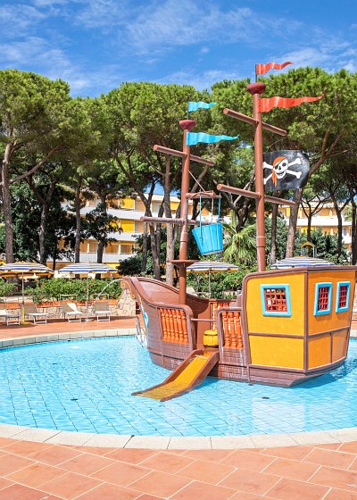 - Kinderpool (außen): Wasserrutsche, Piratenschiff