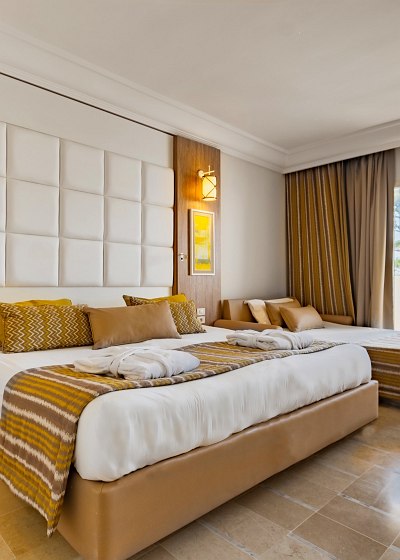 31-35 sqm, junior suite, main building, sea view, renovated, combined living and sleeping area, seating area, single bed, twin bed, double bed, 1 bathroom, bathtub, 1 toilet, hairdryer, tiles, air conditioning (15.06-15.09), centrally controlled, heating (01.11-31.03), safe, 1 TV (satellite TV, German-language programme, typical local programme, other programme, flat screen), telephone, Wi-Fi, mini-refrigerator, balcony or terrace, bathrobe (upon request), slippers (upon request), towel change (3 times a week)