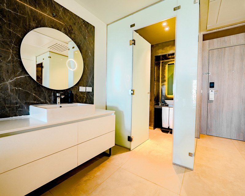 55 sqm, sea view, dressing area, sitting area, shower, walk-in shower, bidet, bathrobe, slippers, hairdryer, make-up mirror, air conditioning, minibar (extra charge), safe, TV (smart TV), kettle, espresso machine, coffee/tea, terrace (furnished), direct pool access, butler service, privileged room service, laundry service (limited number: 4 kg per stay), turndown service, water upon arrival in room
