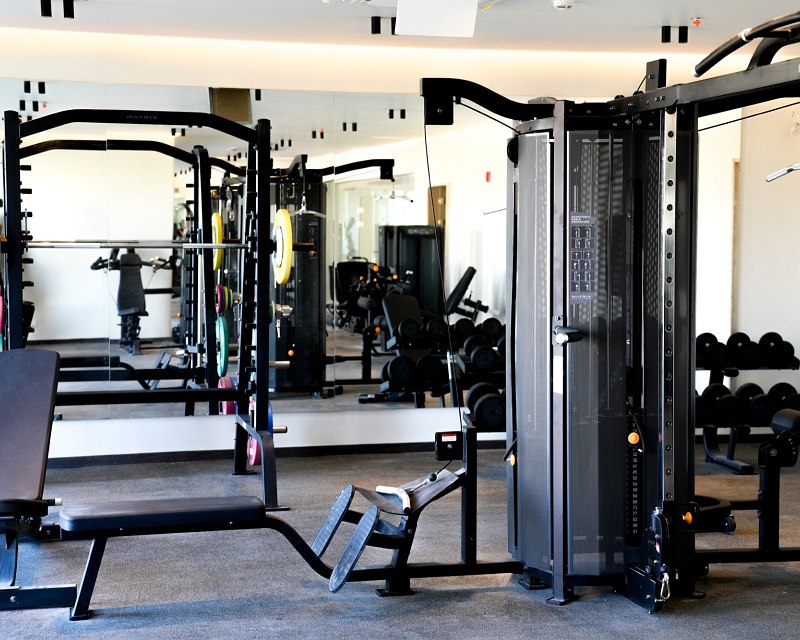 - Fitness room with high-tech cardio equipment and weights and a room for personal training
