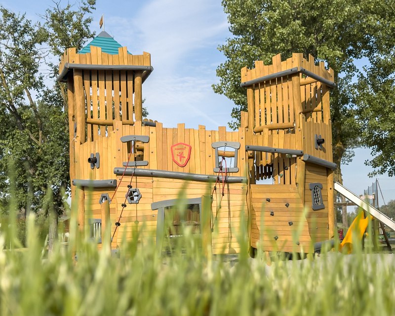 Children’s bikes and helmets can be rented directly on site; basic bikes cost €12 per day or €45 per week.