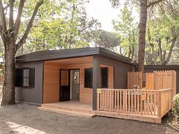 - ca. 37 qm, Bungalow, 2 separate Schlafzimmer, eines mit Doppelbett, eines mit Etagenbett, kombinierter Wohn-/Essraum, Dusche, Außendusche, WC, Klimaanlage, TV (Smart-TV), Kochnische, Espressomaschine, Veranda (möbliert)
