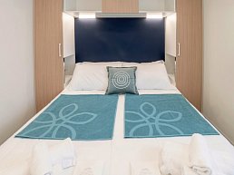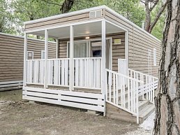 - 31-35 qm, Mobilhome, 2 separate Schlafzimmer, kombinierter Wohn-/Essraum, Sitzecke, Dusche, Klimaanlage, TV (Flachbildschirm), Kochnische, Gas-/E-Herd, Espressomaschine, Veranda (möbliert)