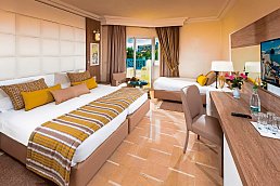 - 51-60 qm, Familien, Hauptgebäude, Meerblick, renoviert, 2 separate Schlafzimmer, kombinierter Wohn-/Schlafraum, Twinbett, Doppelbetten (1 Doppel- oder 2 Einzelbetten), Dusche oder Badewanne, WC, Haartrockner, Fliesen, Klimaanlage, zentral gesteuert, ca. 15.6.-15.9., Heizung, ca. 15.11.-31.3., Minibar, Auffüllung täglich, Softdrinks, Mineralwasser, Safe, TV (Sat-TV, deutschsprachiges Programm, landestypisches Programm, sonstiges Programm, Flachbildschirm), WLAN, Kaffeemaschine, Kaffee/Tee, Balkon oder Terrasse, Handtuchwechsel (3 x wöchentlich)