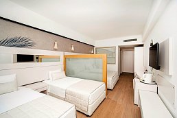 - 36-40 qm, Familien, Großraum, Hauptgebäude, optisch getrennter Wohn-/Schlafraum, Einzelbett, Doppelbett, 1 Bad, Dusche, WC, Haartrockner, Laminatboden, Klimaanlage, Minibar, Auffüllung bei Anreise, Wasser, Safe, 1 TV (Sat-TV), Wasserkocher, Balkon