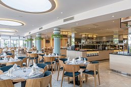 - All Inclusive: Frühstück (Buffet), Langschläferfrühstück bis 11 Uhr, Mittagessen (Buffet), Abendessen (Buffet), Abendessen im à-la-carte-Restaurant (1x pro Aufenthalt), Getränke kostenfrei (10-23 Uhr), Snacks (11-14:30 Uhr), Kaffee/Tee und Gebäck (15-17 Uhr), Eis