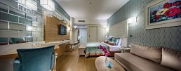 - 36-40 qm, Suite, mit Verbindungstür, Meerblick, separates Schlafzimmer, kombinierter Wohn-/Schlafraum, Doppelbett, Sofabett, Dusche, WC, Bademantel, Haartrockner, Laminatboden, Klimaanlage, zentral gesteuert, Minibar, Auffüllung regelmäßig, Safe, 2 TVs (Sat-TV), DVD-Player, WLAN, Wasserkocher, Kaffee/Tee, Balkon