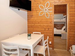- 36-40 qm, Holzbungalow, Bungalow, 2 separate Schlafzimmer, kombinierter Wohn-/Essraum, Sitzecke, Dusche, Klimaanlage, TV (Flachbildschirm), Kochnische, Gas-/E-Herd, Veranda (möbliert)