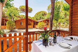 - 31-35 qm, Mobilhome, 2 separate Schlafzimmer, kombinierter Wohn-/Essraum, Sitzecke, Dusche, Klimaanlage, TV (Flachbildschirm), Kochnische, Gas-/E-Herd, Espressomaschine, Veranda (möbliert)